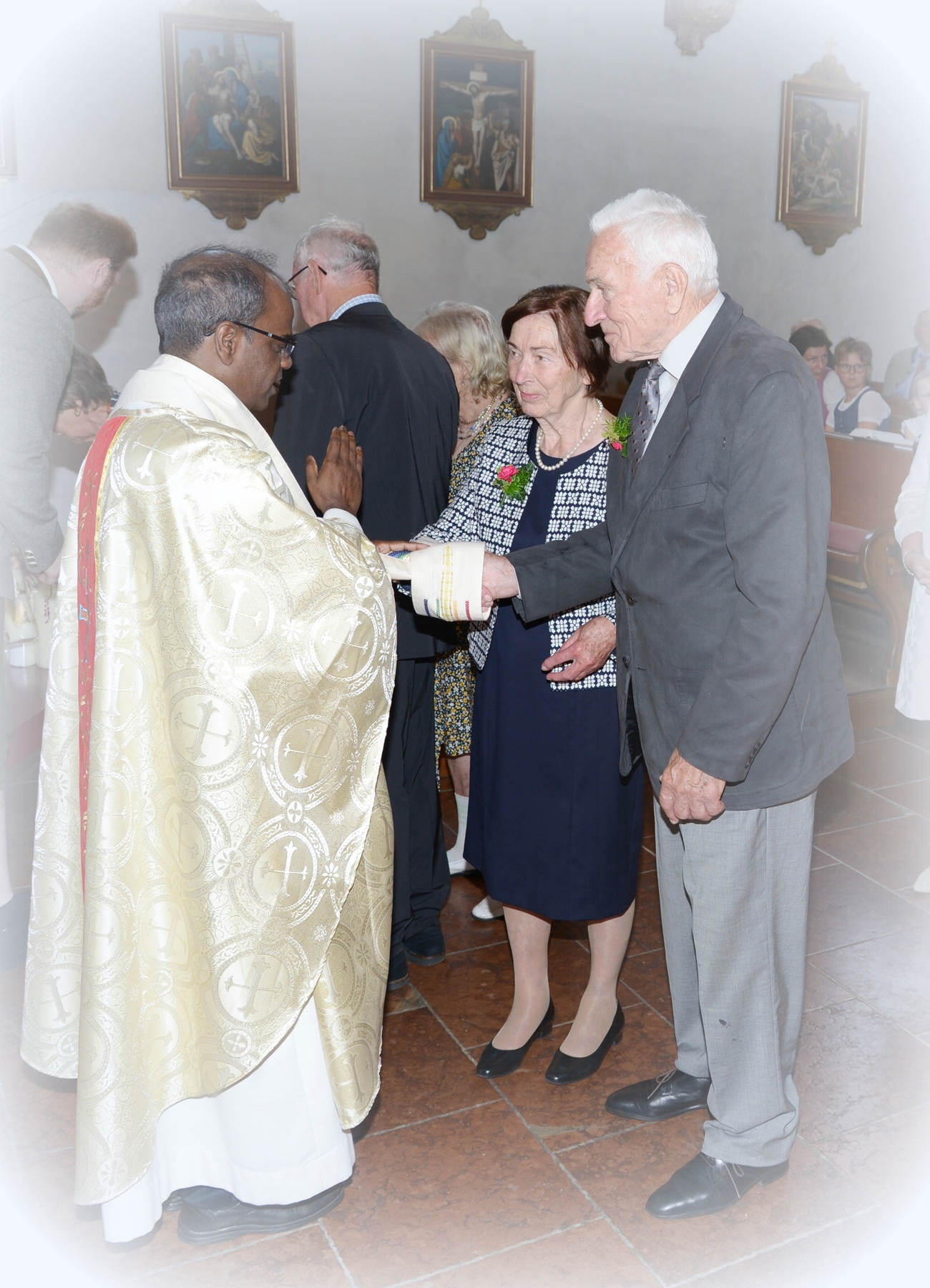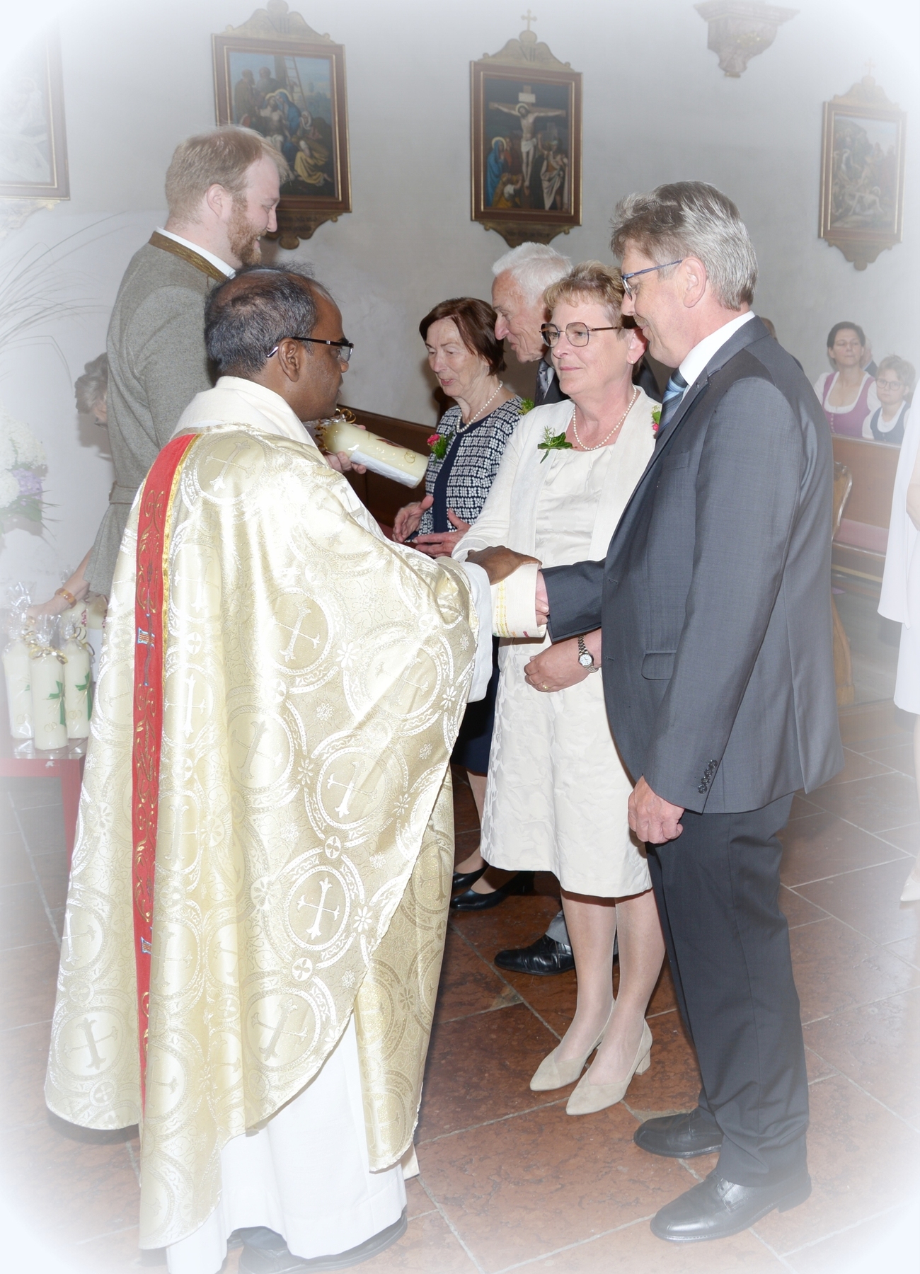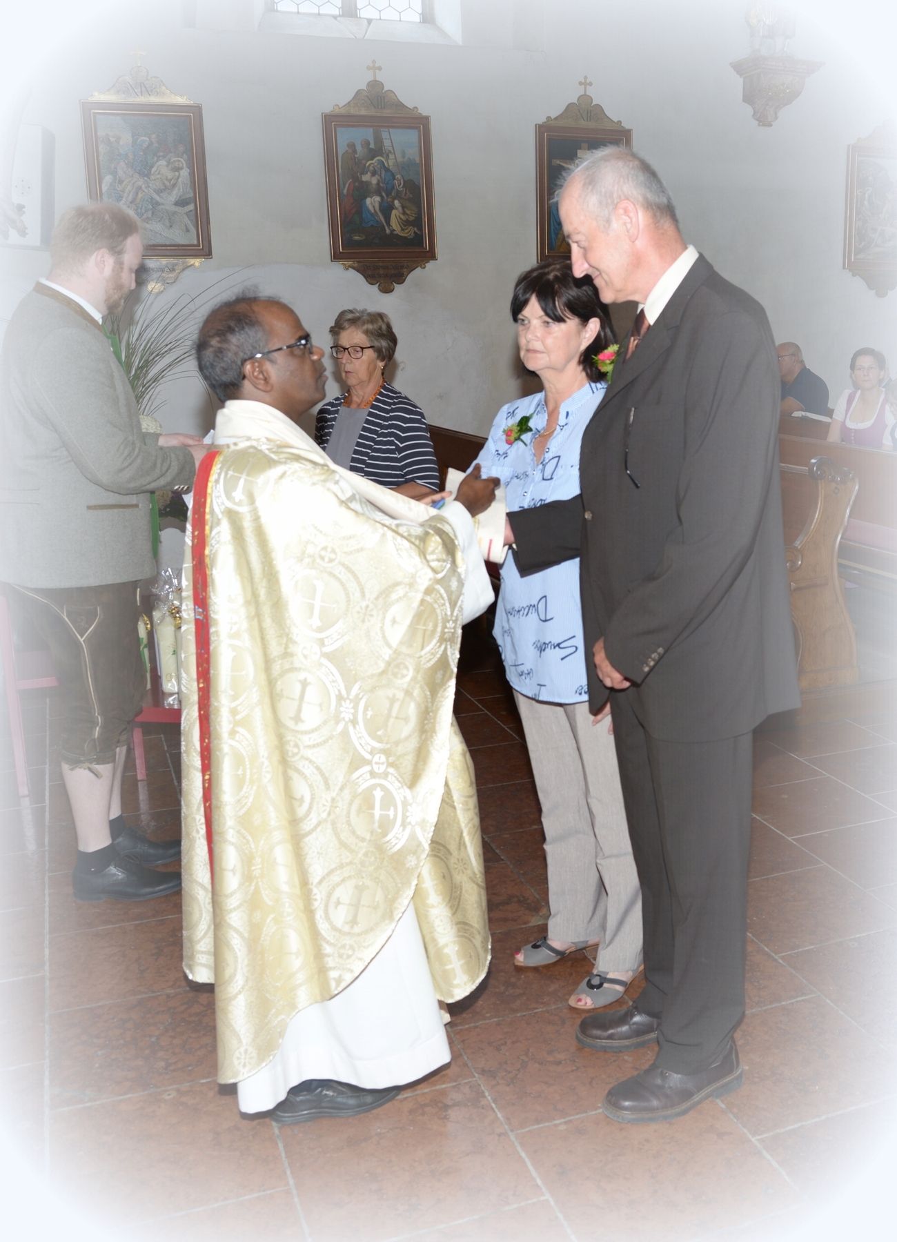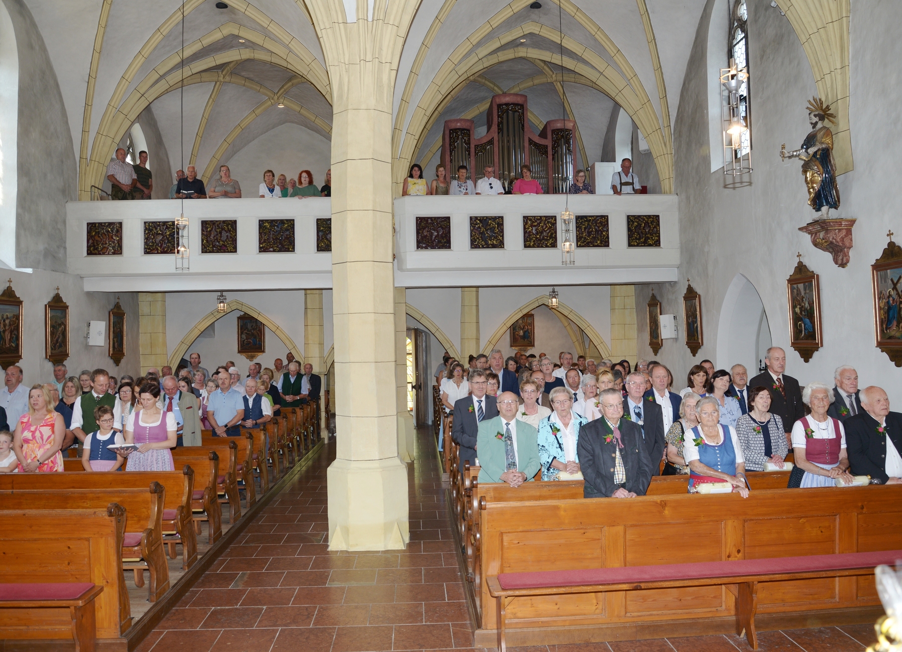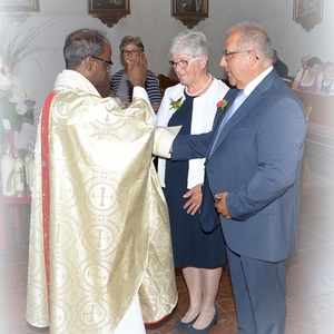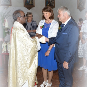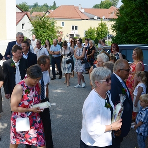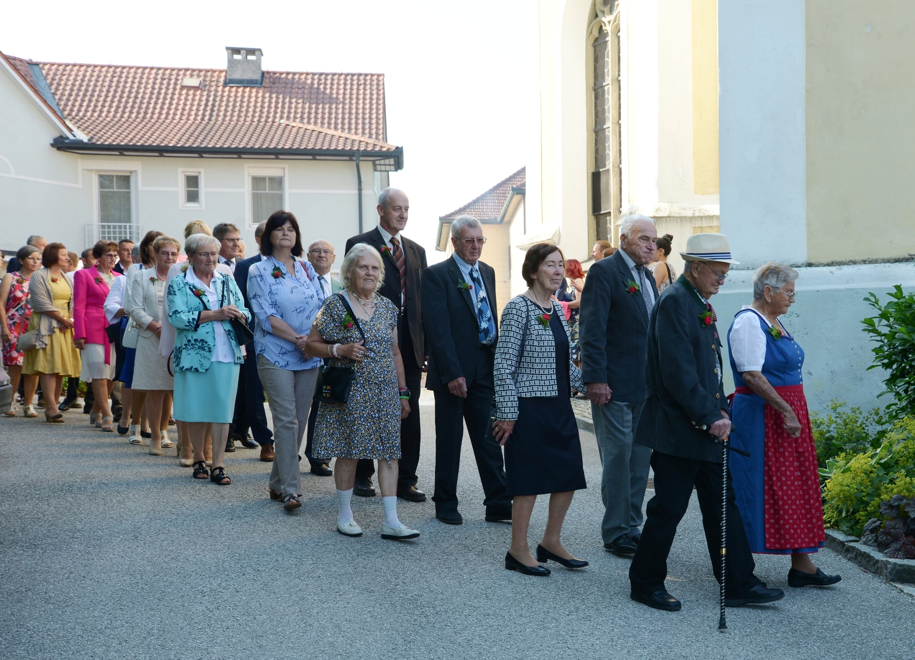 16 Paare, die ihr Ehejubiläum feierten, zogen gemeinsam mit Franz Eschlböck, der sein 60-jähriges Priesterjubiläum feierte, unter Begleitung der Blasmusik zum Festgottesdienst ein. Kaplan Paul hat den Festgottesdienst geleitet und eine ansprechende Festpredigt gehalten. Dieser Festgottesdienst wurde vom Kirchenchor unter der Leitung von Helmut Lang in bewährter Weise musikalisch umrahmt.