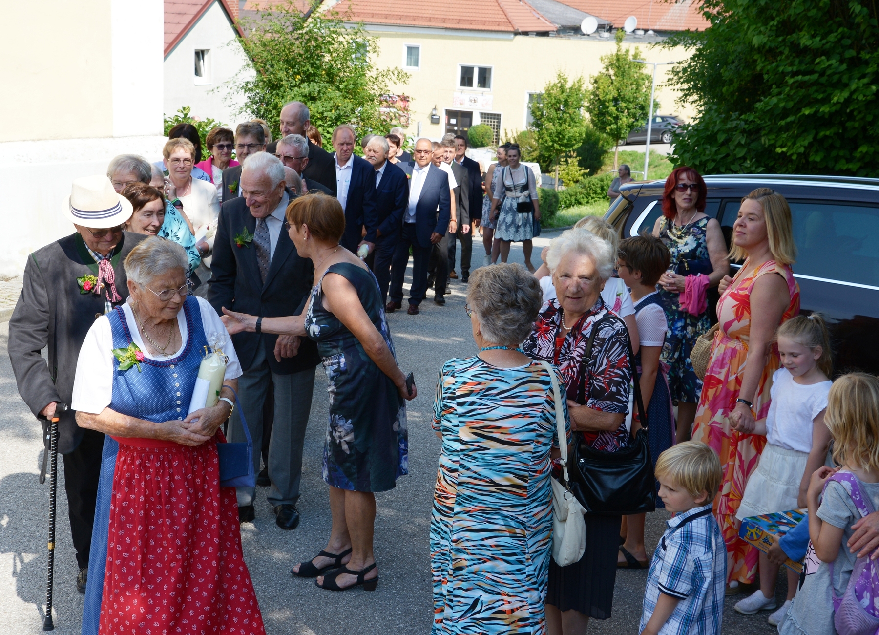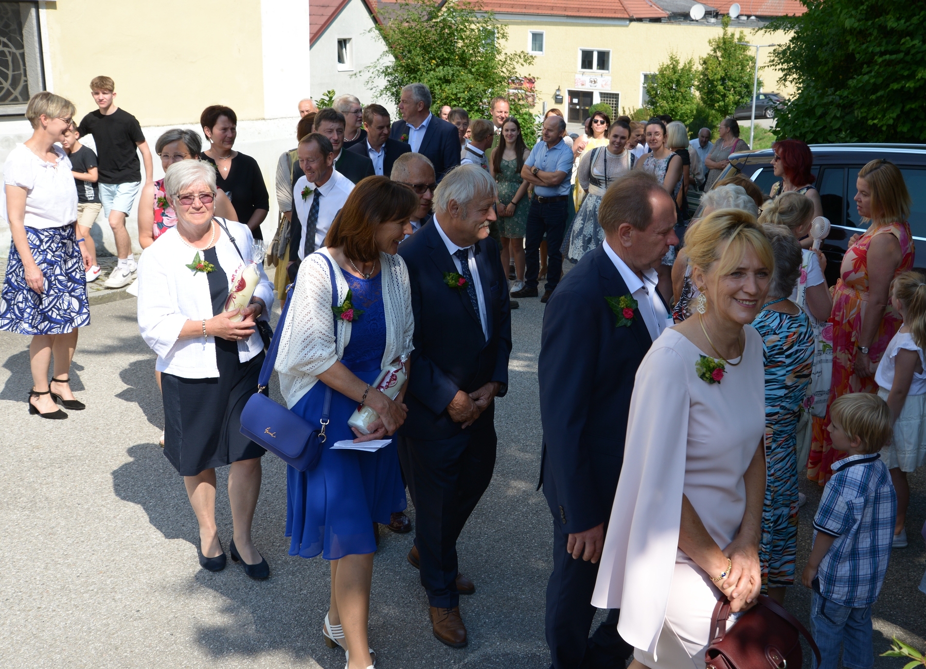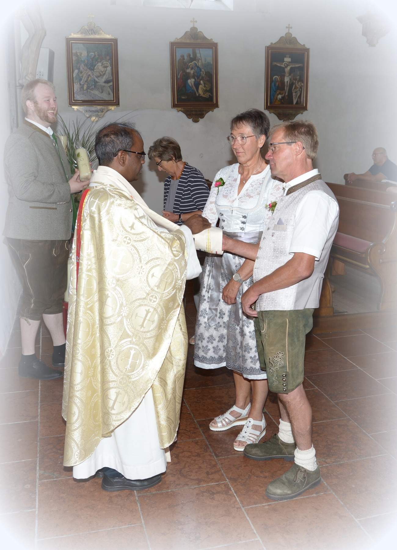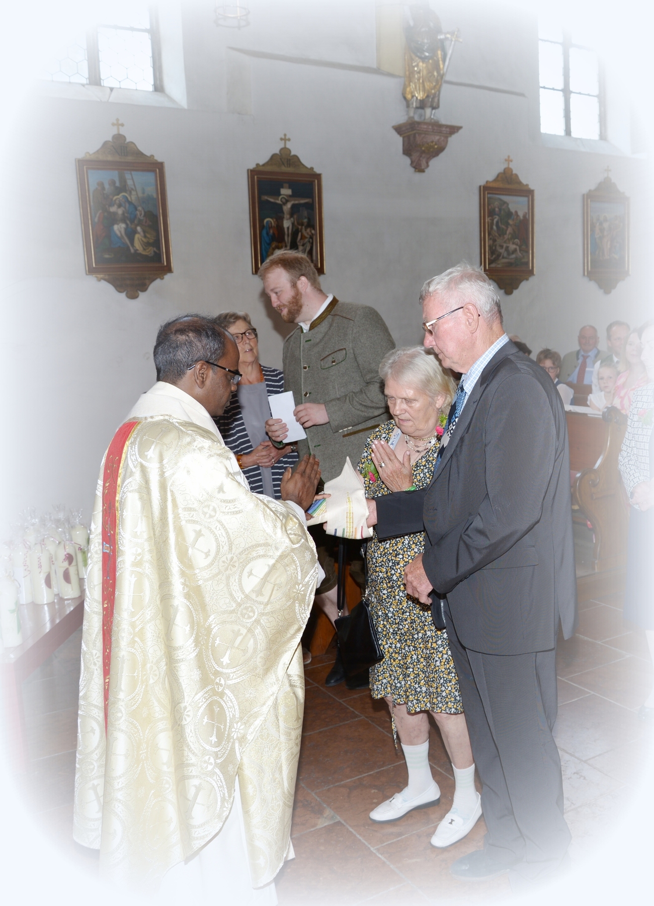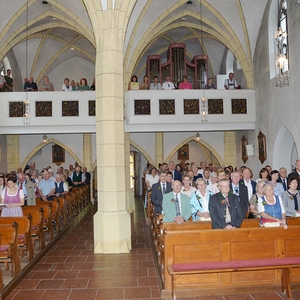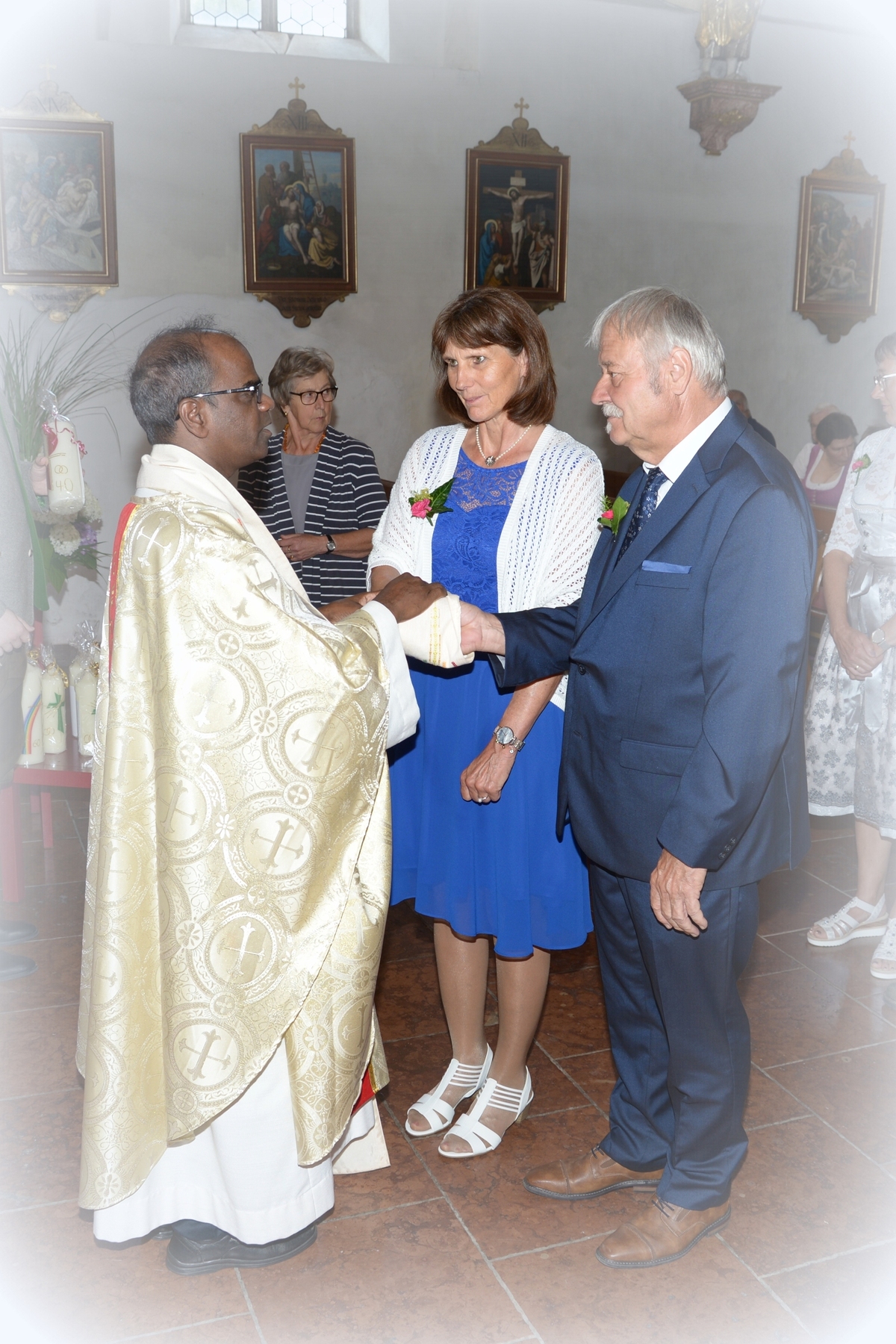 16 Paare, die ihr Ehejubiläum feierten, zogen gemeinsam mit Franz Eschlböck, der sein 60-jähriges Priesterjubiläum feierte, unter Begleitung der Blasmusik zum Festgottesdienst ein. Kaplan Paul hat den Festgottesdienst geleitet und eine ansprechende Festpredigt gehalten. Dieser Festgottesdienst wurde vom Kirchenchor unter der Leitung von Helmut Lang in bewährter Weise musikalisch umrahmt.