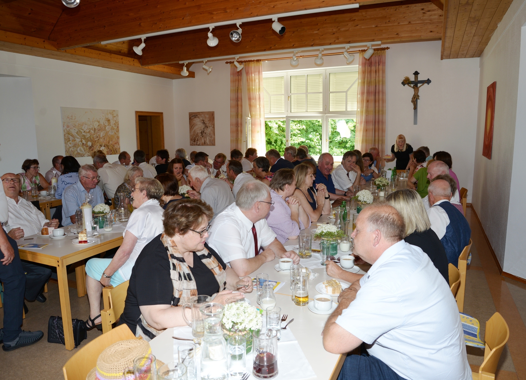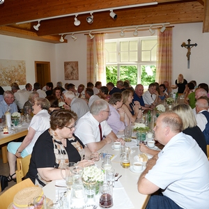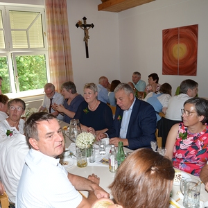Beim anschließenden gemeinsamen Essen im festlich geschmückten Pfarrsaal konnten noch allerhand gemeinsame Erinnerungen und Neuigkeiten ausgetauscht werden. Als Ehrengäste waren aus der Pfarre EferdingerLand Pfarrer Klaus Dopler und Vorständin Sylvia Stockhammer, sowie BGM Herbert Holzinger mit seiner Frau Anita, Br. Markus und P. Dominik aus dem Haus Dachsberg und unser Pastoralassistent René Koppenberger-Drenik anwesend.