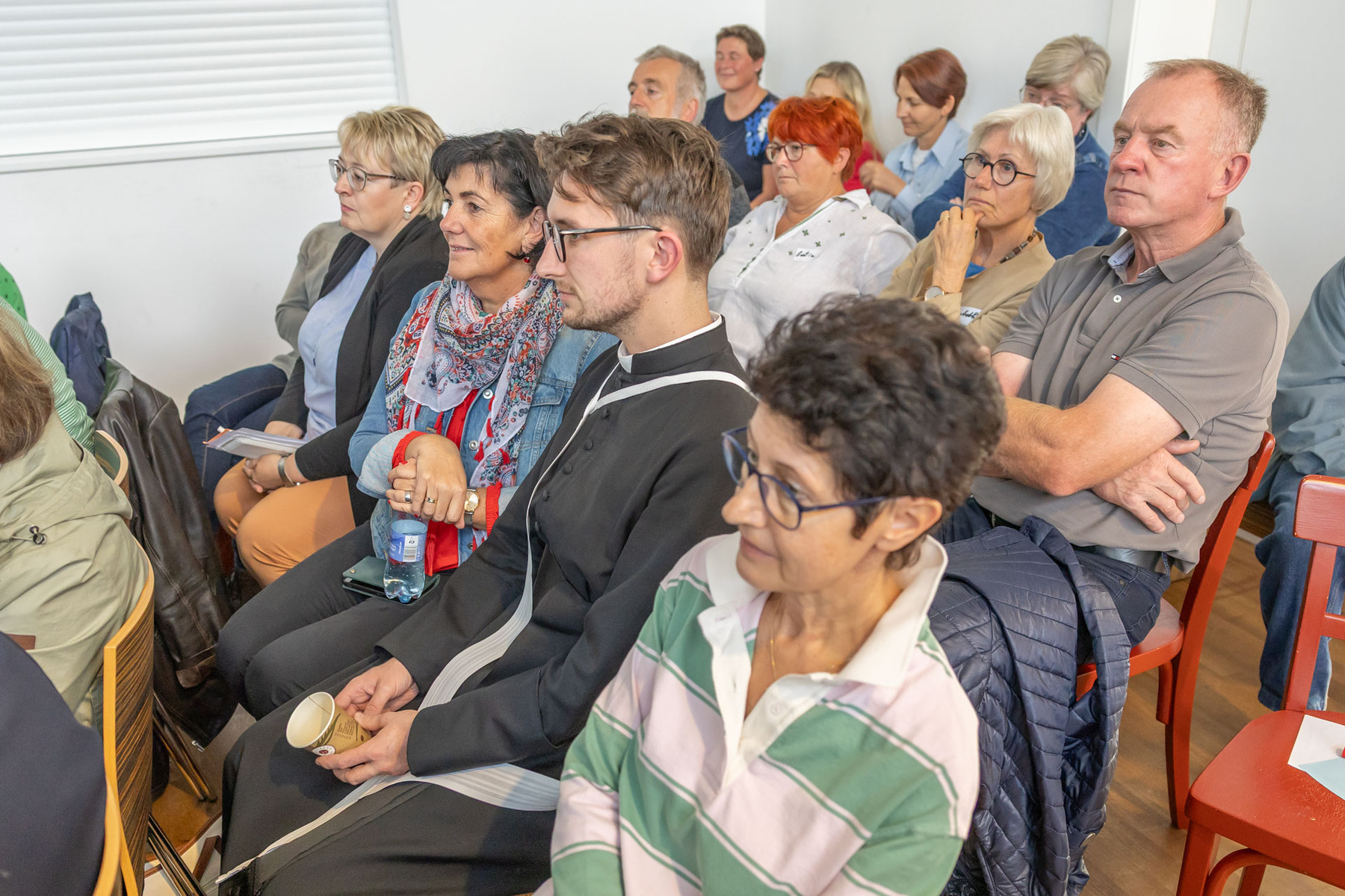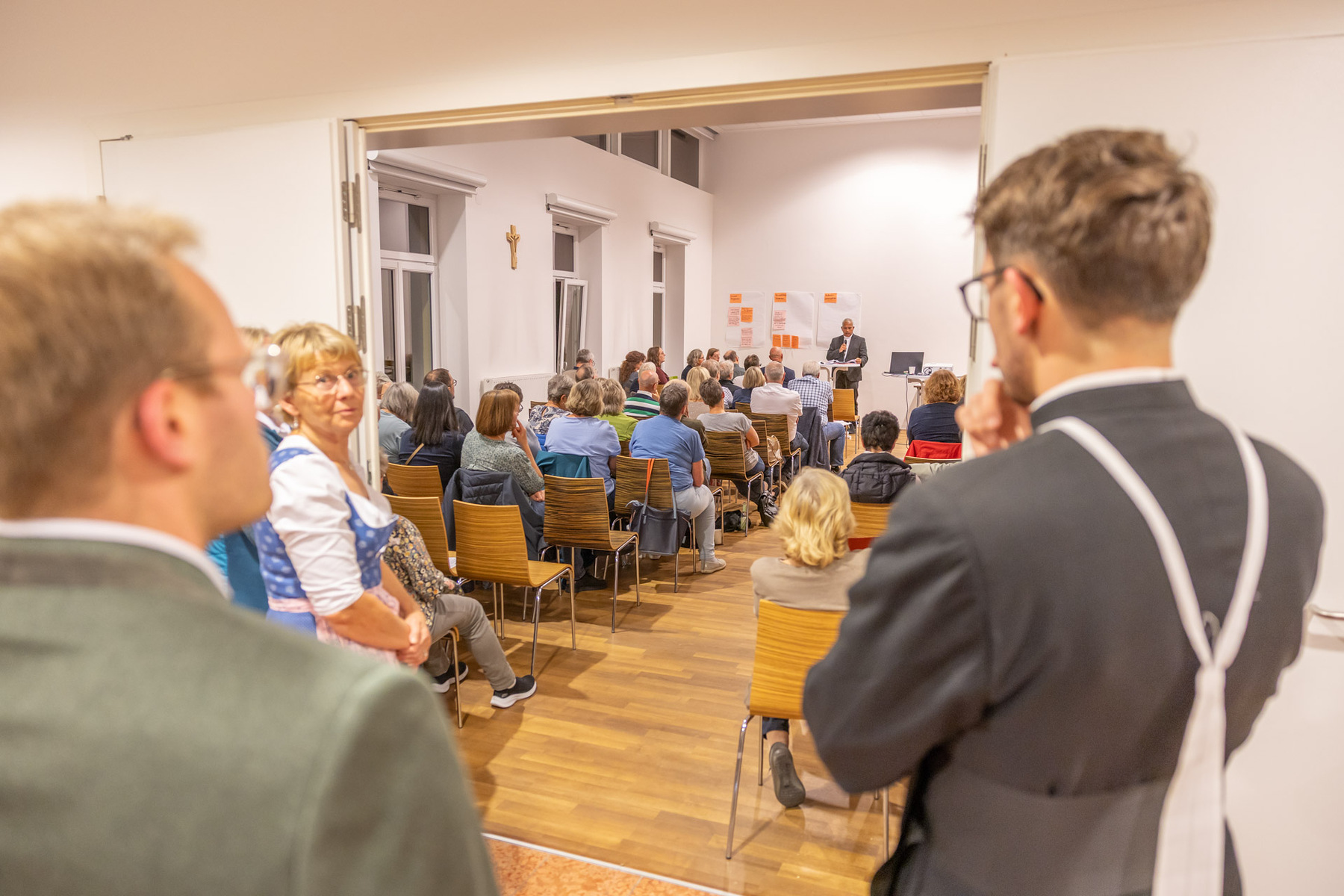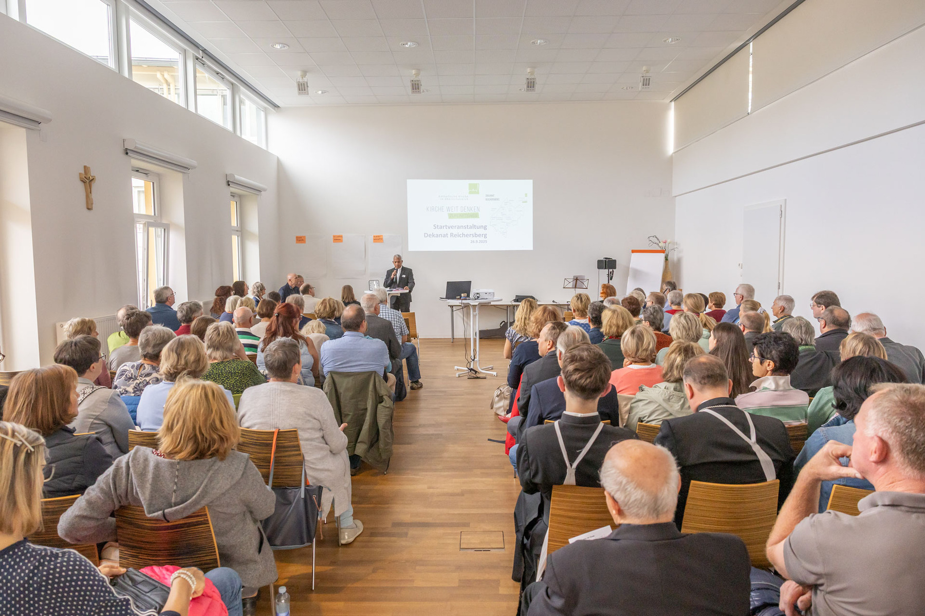 Über 130 Vertreter:innen aus den 16 Pfarren und pastoralen Orten des Dekanates Reichersberg waren ins Pfarrheim Obernberg am Inn gekommen, um sich über den Prozess der Pfarrwerdung zu informieren und erste Schritte zum neuen Miteinander zu setzen. Auch Bürgermeister:innen, Schulleiter:innen und Religionslehrer:innen nahmen an der Veranstaltung teil. Für die lebendige musikalische Gestaltung sorgte eine dreiköpfige Band. Dekanatsassistentin Patrizia Wohlmacher und die Beauftragte für Jugendpastoral Natascha Kahn stellten die spirituellen Impulse unter das Thema „Sendung und Aufbruch“. Wie auch die Lieder brachten die Impulse das Vertrauen zum Ausdruck, dass der Weg vom Dekanat zur Pfarre vom Segen Gottes begleitet ist.