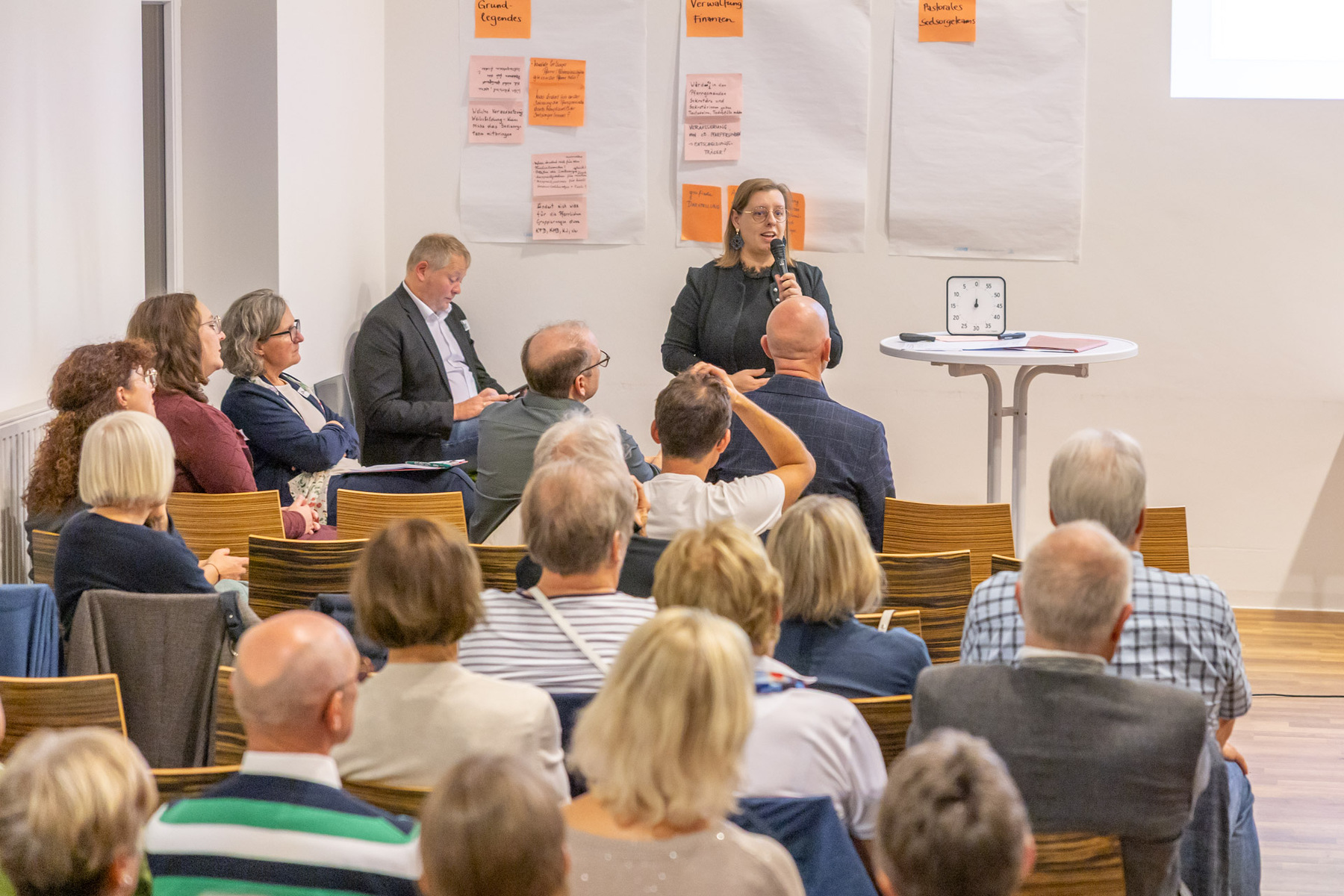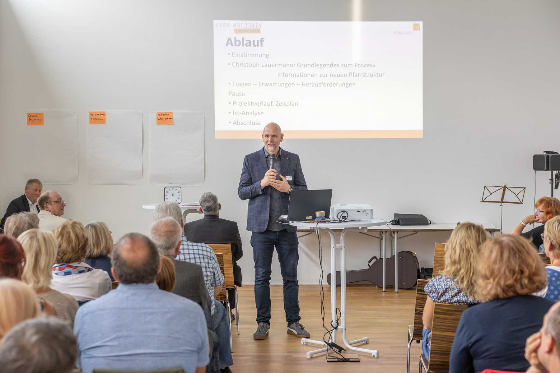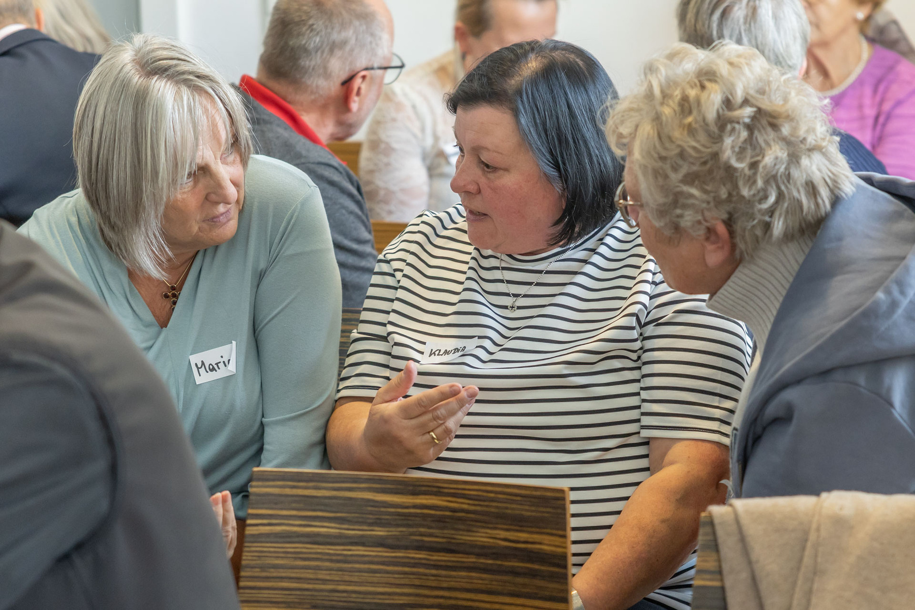 Über 130 Vertreter:innen aus den 16 Pfarren und pastoralen Orten des Dekanates Reichersberg waren ins Pfarrheim Obernberg am Inn gekommen, um sich über den Prozess der Pfarrwerdung zu informieren und erste Schritte zum neuen Miteinander zu setzen. Auch Bürgermeister:innen, Schulleiter:innen und Religionslehrer:innen nahmen an der Veranstaltung teil. Für die lebendige musikalische Gestaltung sorgte eine dreiköpfige Band. Dekanatsassistentin Patrizia Wohlmacher und die Beauftragte für Jugendpastoral Natascha Kahn stellten die spirituellen Impulse unter das Thema „Sendung und Aufbruch“. Wie auch die Lieder brachten die Impulse das Vertrauen zum Ausdruck, dass der Weg vom Dekanat zur Pfarre vom Segen Gottes begleitet ist.