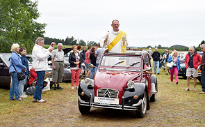 Bei der 27. Landl Rallye in Meggenhofen von 19. bis 21. August 2016 segnete PAss Diakon Andreas Hagler die anwesenden Oldtimer und ihre Besitzer, sowie zahlreiche Gäste, wie im letzten Jahr bereits aus dem fahrenden „Papamobil“.