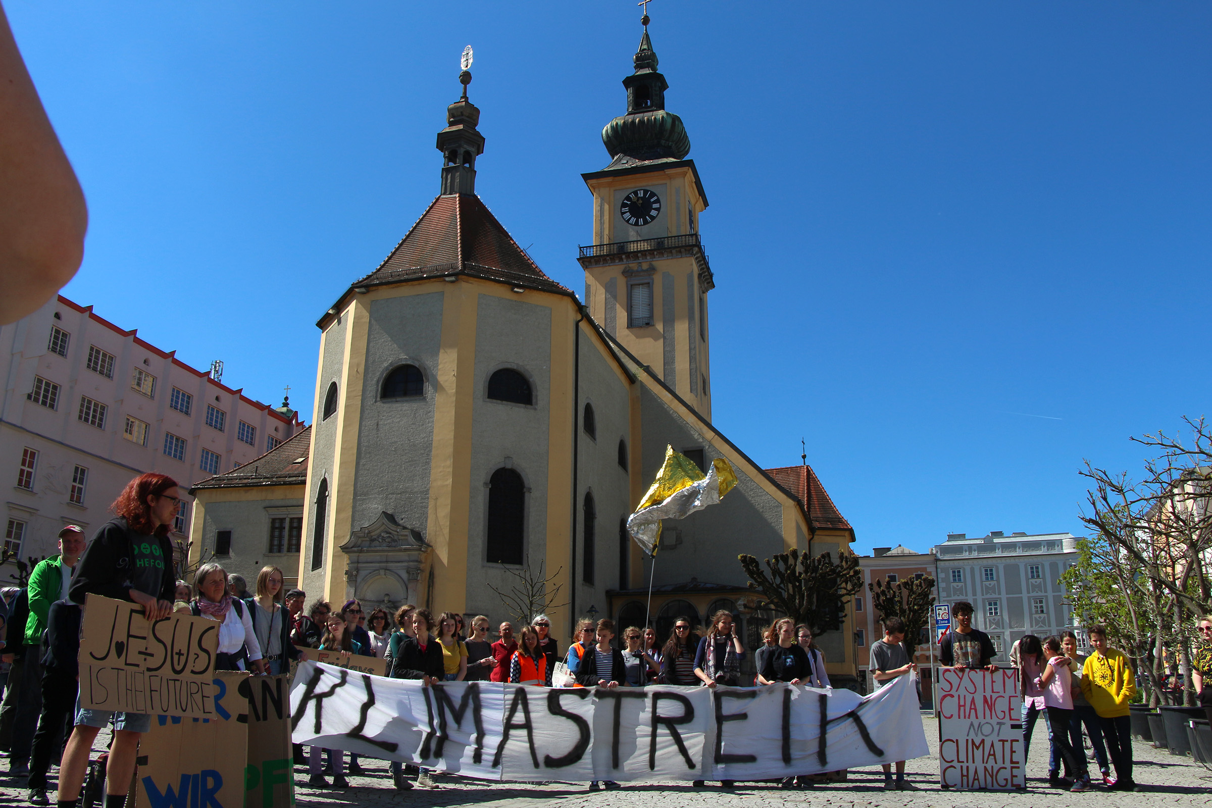 Die Aktion „Religions For Future“, zu der die Organisatoren von „Fridays for Future“ am Karfreitag geladen hatten, vereinte RepräsentantInnen verschiedener Religionen und Glaubensgemeinschaften, die gemeinsam für den Klimaschutz einstehen: Bischof Dr. Manfred Scheuer (Katholische Kirche), Mag.a Veronika Obermeir-Siegrist (Evangelische Kirche A. B.), Martin Obermeir-Siegrist (Evangelisch-methodistische Kirche), Mag. Samuel Ebner (Altkatholische Kirche), Brigitte Bindreiter (Buddhistische Religionsgesellschaft) und Sarah Momani (Islamische Glaubensgemeinschaft). Sie schlossen sich den zahlreichen Demonstrierenden an, die sich wie schon in den vergangenen Wochen auch an diesem Freitag eingefunden hatten, um für den Klimaschutz zu sensibilisieren.