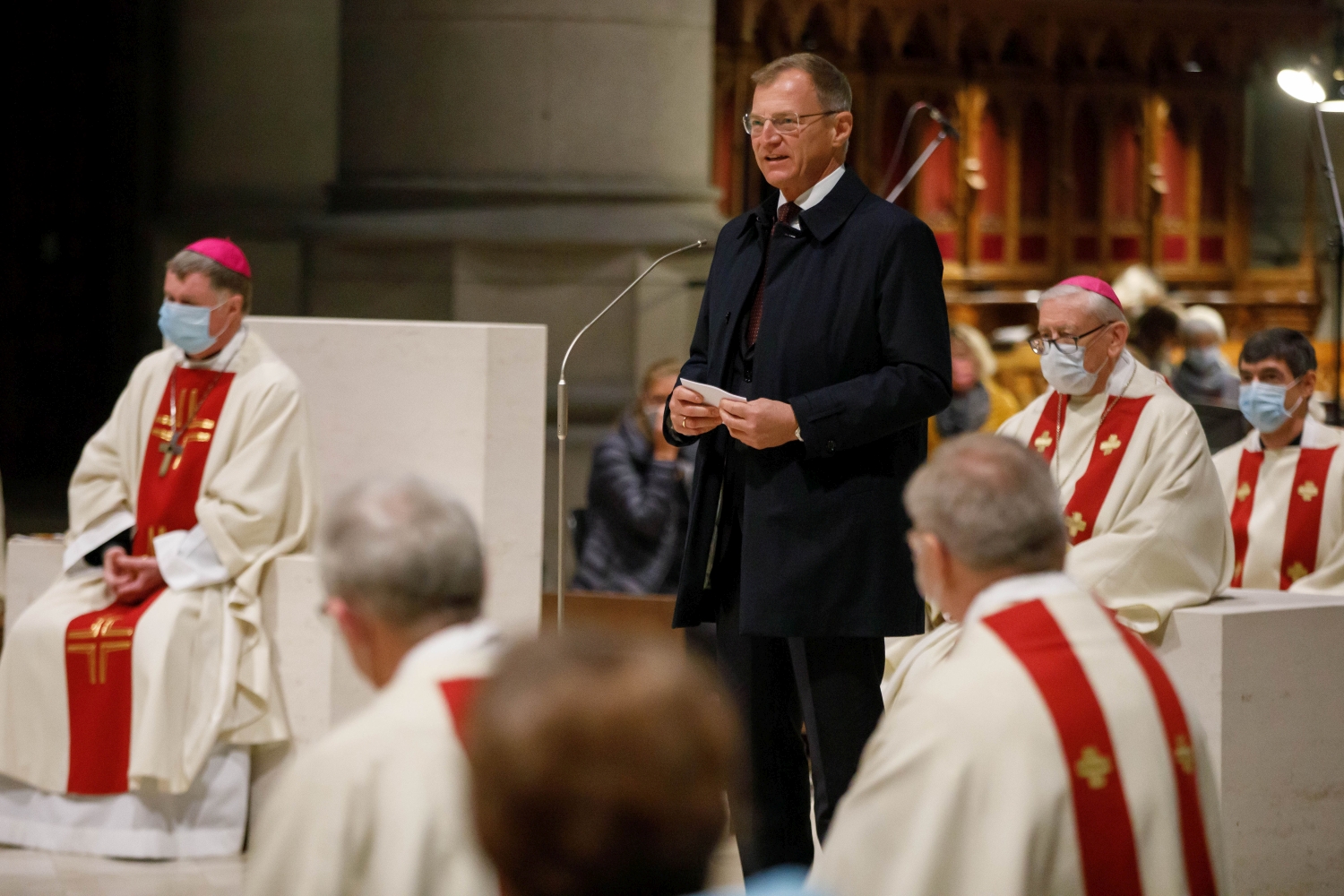 Am Ende des Gottesdienstes überbrachte Landeshauptmann Mag. Thomas Stelzer Glück- und Segenswünsche. In seiner Festansprache dankte er den beiden Jubilaren dafür, dass sie den Weg der Kirche in Oberösterreich durch viele Jahrzehnte und Jahre gestaltet und geprägt haben. Stelzer wörtlich: „Ihr bietet mit der Kirche das an, was für uns alle und für unser Land so wichtig ist: Stärkung für jede/n Einzelne/n, indem der Glaube nähergebracht und die Auseinandersetzung mit dem Glauben angeboten wird. Das ist gerade in Zeiten, in denen so viele Sicherheiten abhandenkommen und Selbstverständlichkeiten ins Wanken geraten, besonders wichtig. Die Fragen nach der Lebensgestaltung, nach dem Ziel des Lebens, nach dem, was über uns hinausführt, werden mehr und offensiver gestellt und brauchen Antwortangebote, die die Kirche geben kann.“ Stelzer dankte der Katholischen Kirche in Oberösterreich, „die Gemeinschaft ist, und Gemeinschaft stiftet“, auch für ihren Beitrag zur Gesellschaft in Oberösterreich – in den Bereichen Soziales, Kultur, Bildung und im Zusammenleben der Gemeinden und Ortschaften. Der Landeshauptmann: „Das schafft ein Klima des Miteinanders und des Zusammenhalts, das unser Land auszeichnet.“