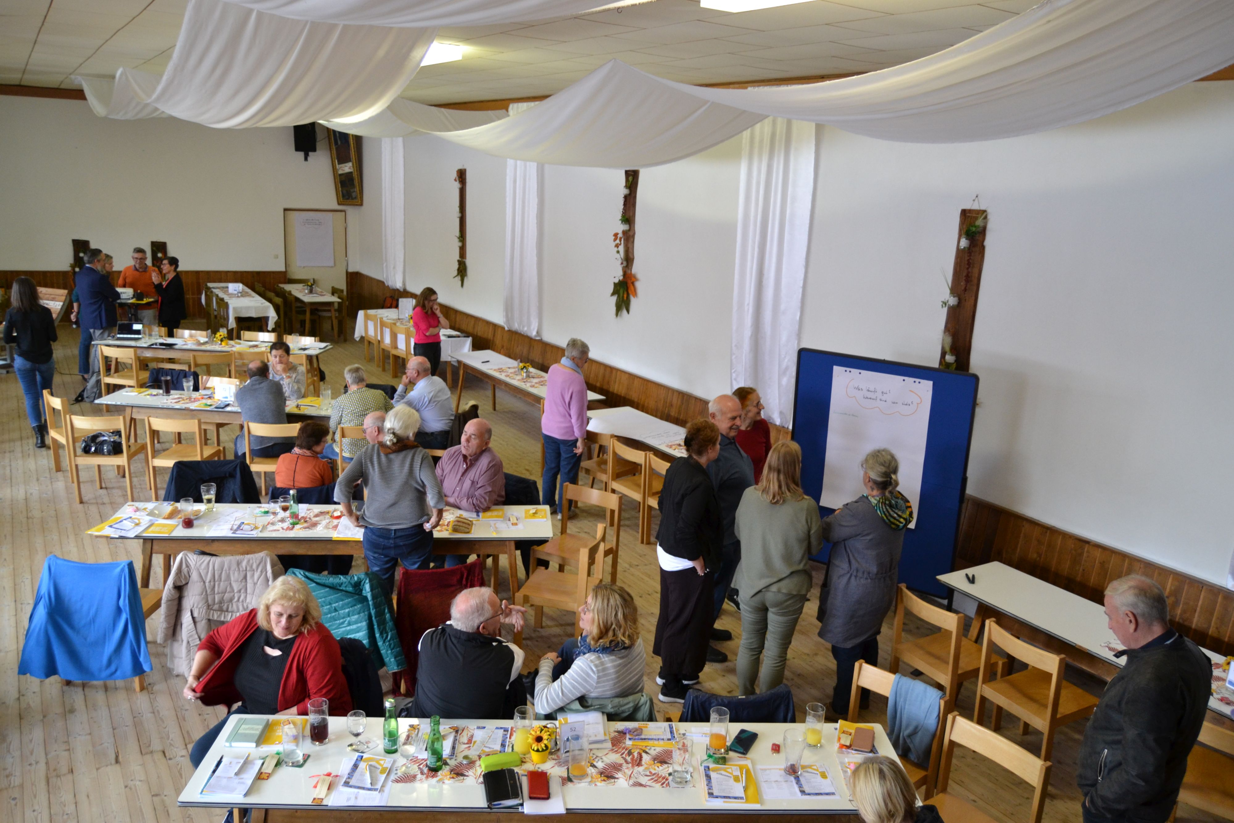 Foto 3, Foto 4 und Foto 5: Lebendiger Austausch und aufmerksames Zuhören bei der Startveranstaltung beim Kirchenwirt in Rainbach.