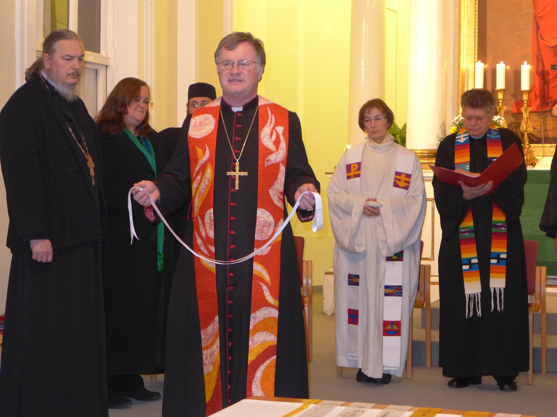 Die VertreterInnen der christlichen Kirchen hatten beim Einzug in die Kirche Bänder bei sich, auf die sie einen Satz zum Thema des Gottesdienstes geschrieben hatten. Die Bänder wurden auf den Altar gelegt, die Sätze laut vorgelesen. Sie symbolisierten das Band der Liebe Gottes und das Band der Einheit zwischen den Christen: Jesus Christus, der die gemeinsame Mitte ist. Auch alle Mitfeiernden waren eingeladen, Bänder mit einem Bibelzitat, einer Botschaft oder einem persönlichen Anliegen zu beschriften.