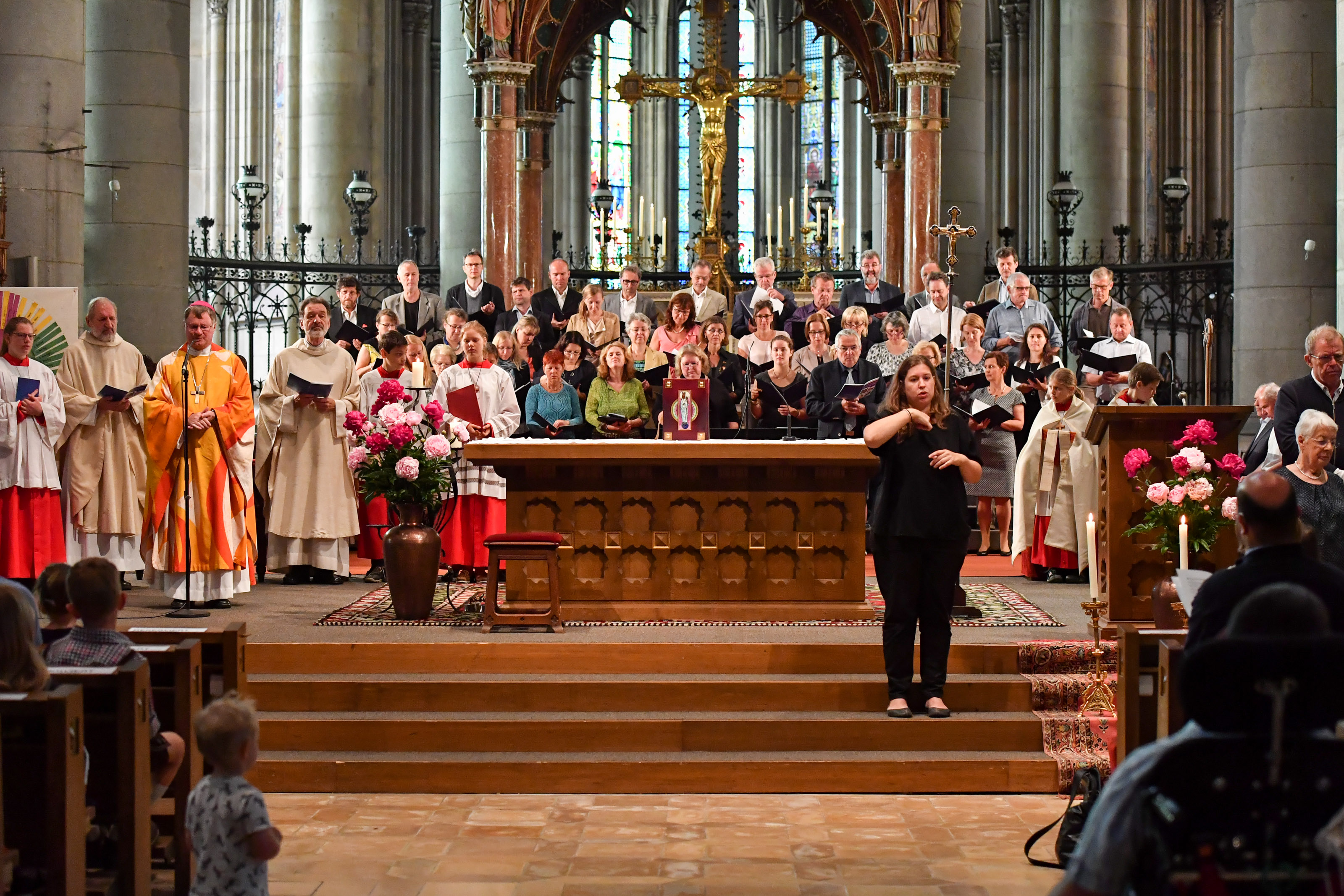 Mit der Gemeinde feierten Bischof Manfred Scheuer, Dompfarrer Maximilian Strasser und Dompropst Bischofsvikar Willi Vieböck. Der Gottesdienst stand unter dem Motto „Leben in Vielfalt“. Jeder Mensch ist einzigartig – und diese Einzigartigkeit ergibt eine Vielfalt, die das Leben spannend macht. Diese Vielfalt und Lebendigkeit wurde auch im Gottesdienst spürbar: (Klein-)Kinder, Erwachsene und alte Menschen, ob mit und ohne Beeinträchtigung, bildeten eine bunte Gemeinschaft. Die musikalische Gestaltung des Gottesdienstes war ein Fest für Ohren und Augen: Es musizierten der Chor „Collegium Vocale“ unter der Leitung von Josef Habringer und Heinrich Reknagel an der Orgel; der Gebärdenchor der Stadtpfarre Urfahr unter der Leitung von Martha Svoboda übertrug die gesungenen Lieder in „Melodien für die Augen“. Ein visueller Genuss, auch für hörende Menschen, war die kompetente Dolmetschung in die Gebärdensprache durch Stefanie Gunesch und Sophie Gruber, die das Fest zusätzlich bereicherte.