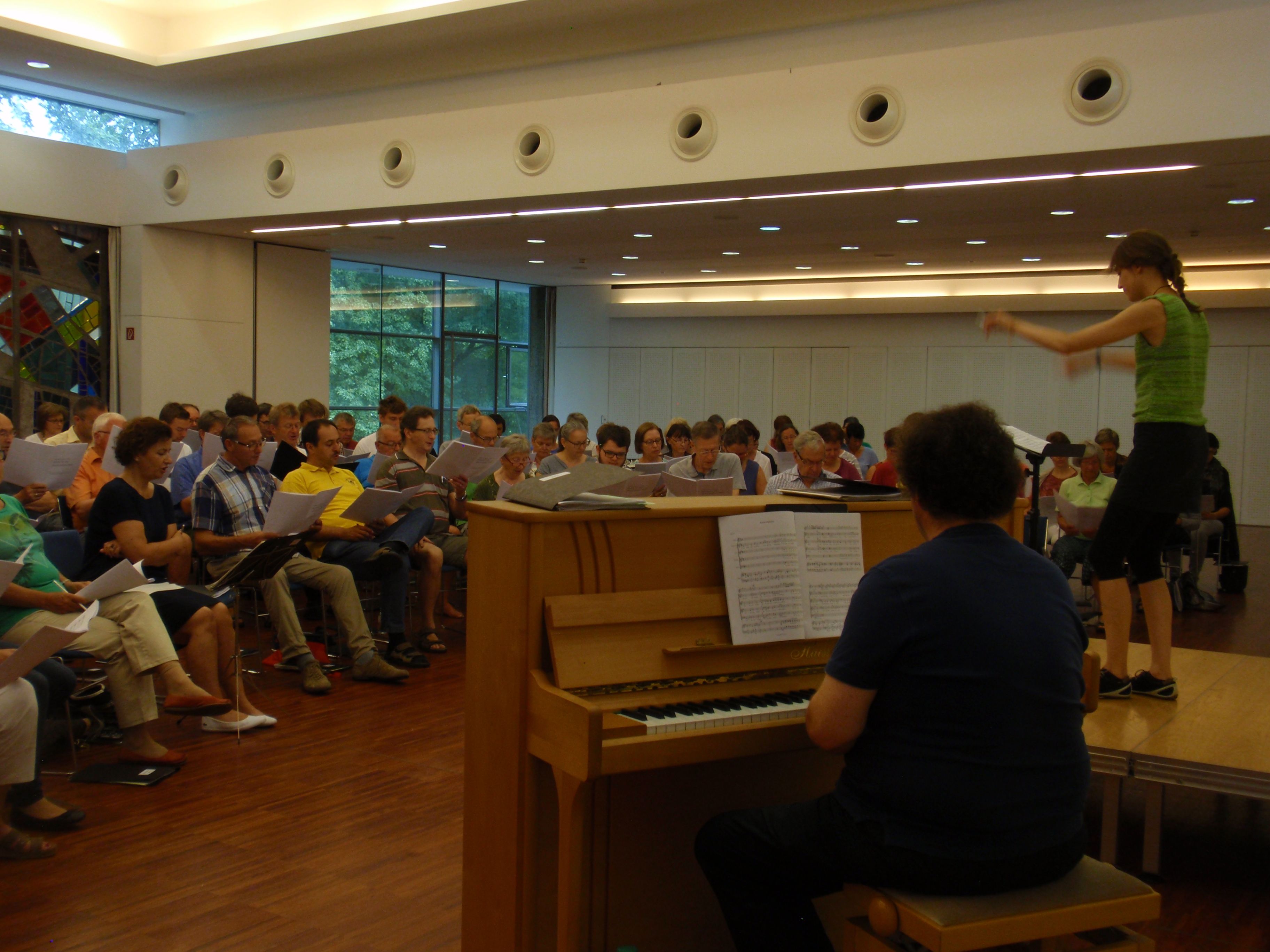Chorleiter Andreas Peterl, Leiter des Referates für Kirchenmusik, arbeitet mit den TeilnehmerInnen im Gesamtchor.