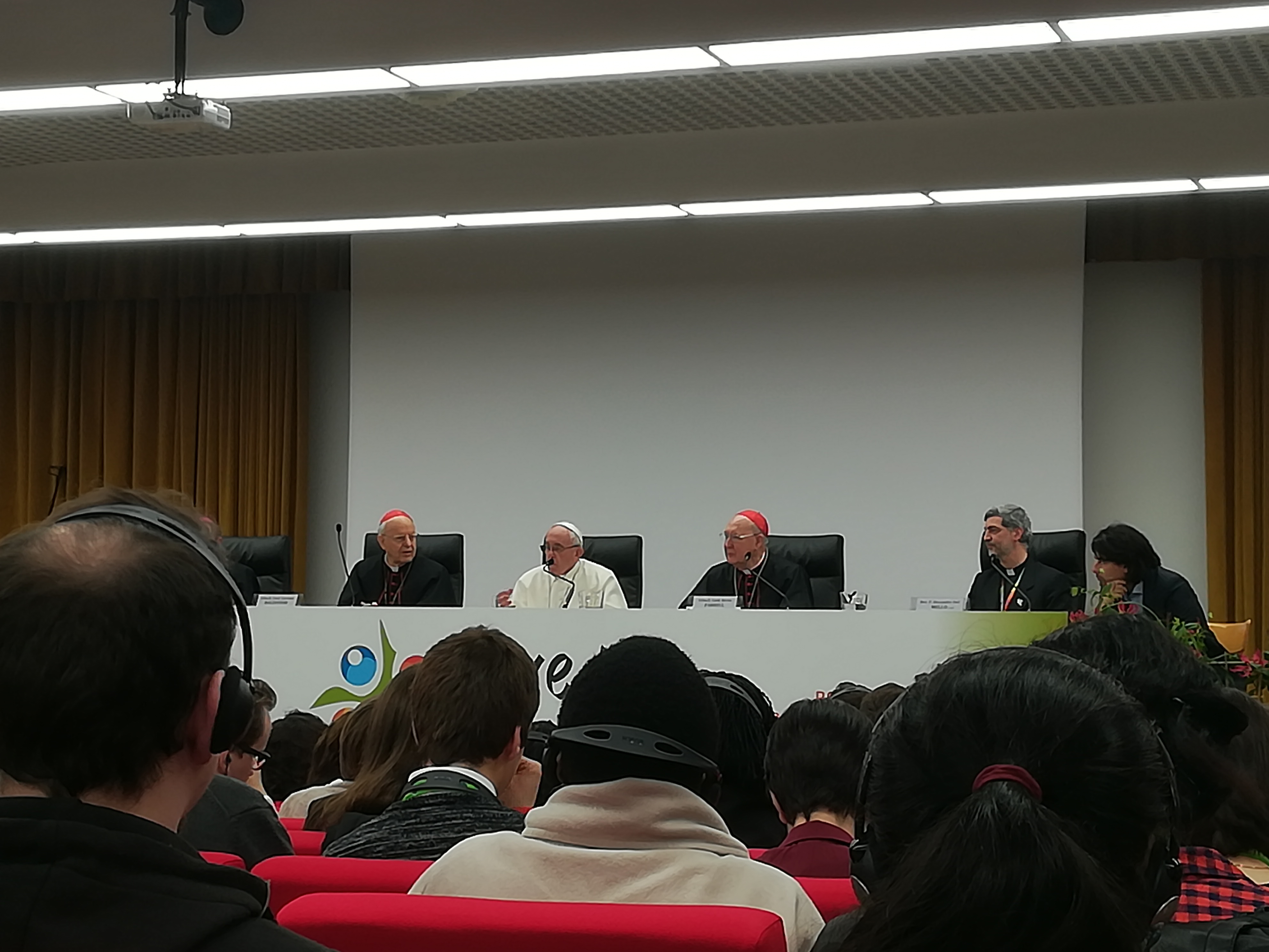 Den Papst hat Eva Wimmer als „extrem authentisch“ erlebt. „Geplant war, dass Papst Franziskus die Eröffnungsrede hält und dann etwa eine Stunde mit uns verbringt. Geblieben ist er drei bis vier Stunden, und man konnte spüren, dass er sehr gern unter jungen Menschen ist“, erzählt Wimmer. Seine Eröffnungsrede empfand sie als inspirierend für das gesamte Vorbereitungstreffen: „Der Papst hat uns ermutigt, dass wir offen sagen, was wir denken, dass wir etwas riskieren und auch kritisieren. Er meinte, wenn junge Menschen keine Risikobereitschaft haben, sind sie auch mit 20 schon alt. Franziskus hat betont, dass die Kirche den Visionen der Jungen folgen muss. Er hat uns versichert, dass unser Beitrag ernstgenommen wird.“ Diese Eröffnungsworte seien sehr bestärkend gewesen, so Wimmer, auch für die Arbeit in den Gruppen. „Wenn in Diskussionen jemand gemeint hat, dass etwas kirchenrechtlich nicht möglich ist, gab es immer jemanden, der meinte: ‚Der Papst hat gesagt, wir sollen etwas riskieren und auch kritisieren.‘ Das hat sich positiv auf die Arbeit in den Kleingruppen ausgewirkt.“ Auch vom Humor des Papstes ist die Theologiestudierende angetan: „Er hat uns mit seiner Rede immer wieder zum Lachen gebracht und kann auch über sich selbst lachen. Die Offenheit, zu der er uns ermutigt hat, hat er schon in seiner Rede verkörpert.“